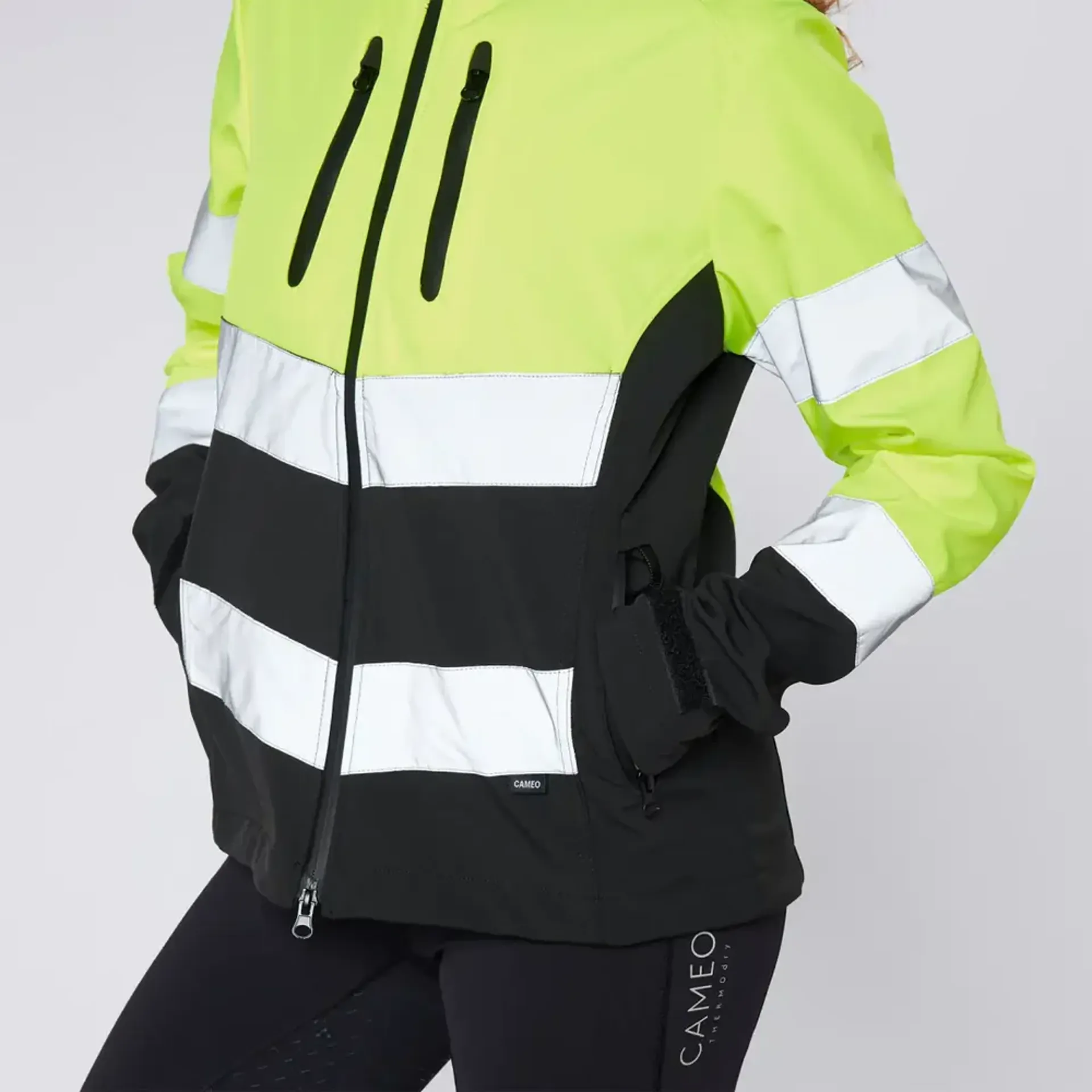 The Cameo Water Repellent Hi Viz Jacket in Yellow offers excellent visibility with its bright fluorescent colour and 360° reflective detailing. Made from a durable, water-repellent outer shell, it provides reliable protection in changing weather. A detachable hood and sealed front zip add practicality, while the rider-friendly cut ensures comfort and freedom of movement. Ideal for hacking, road riding, and low-light conditions.