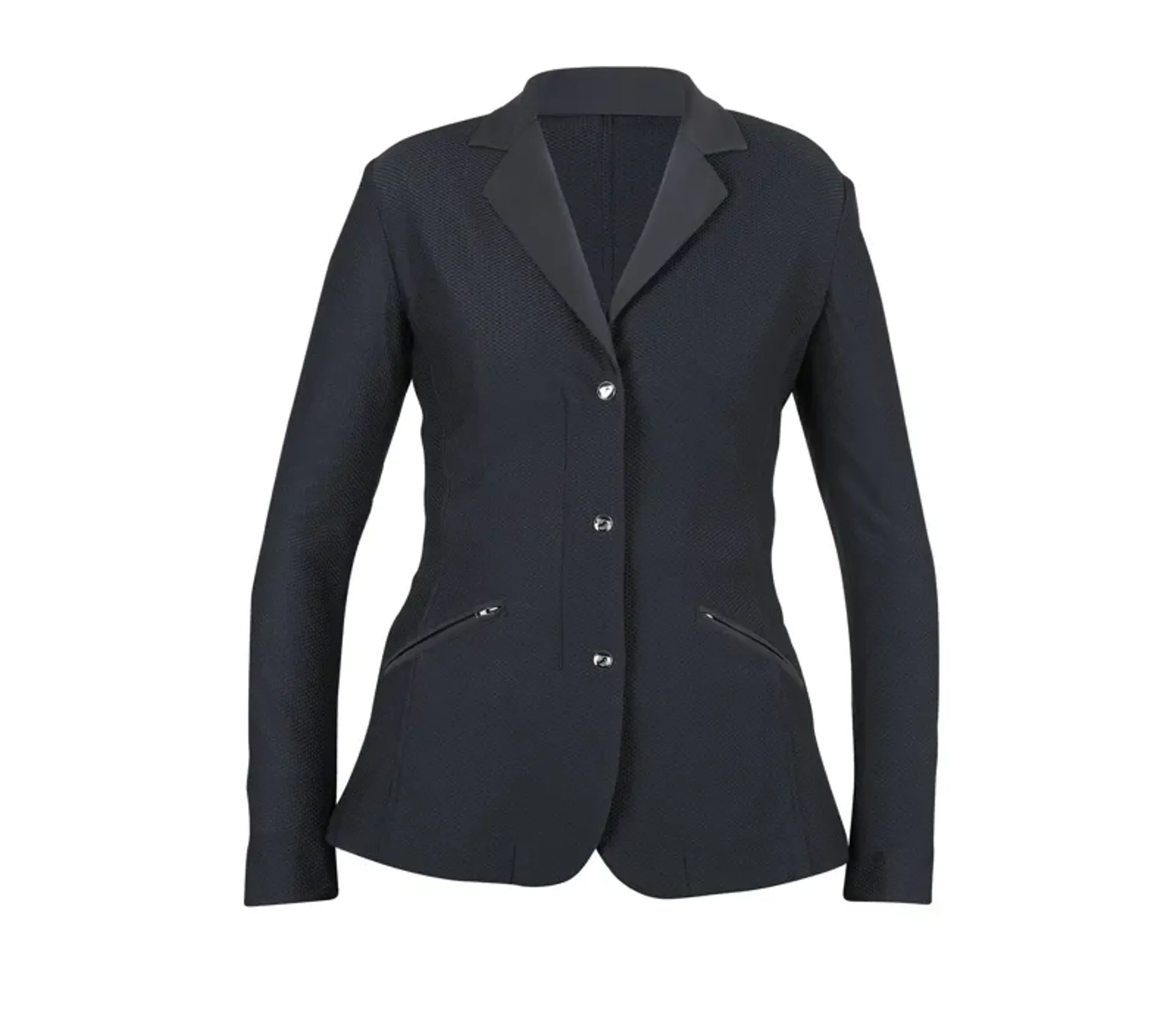 Achieving ultimate ventilation, the form-fitting goldhawk show jacket features innovative mesh fabric that allows for increased airflow but looks opaque when worn.