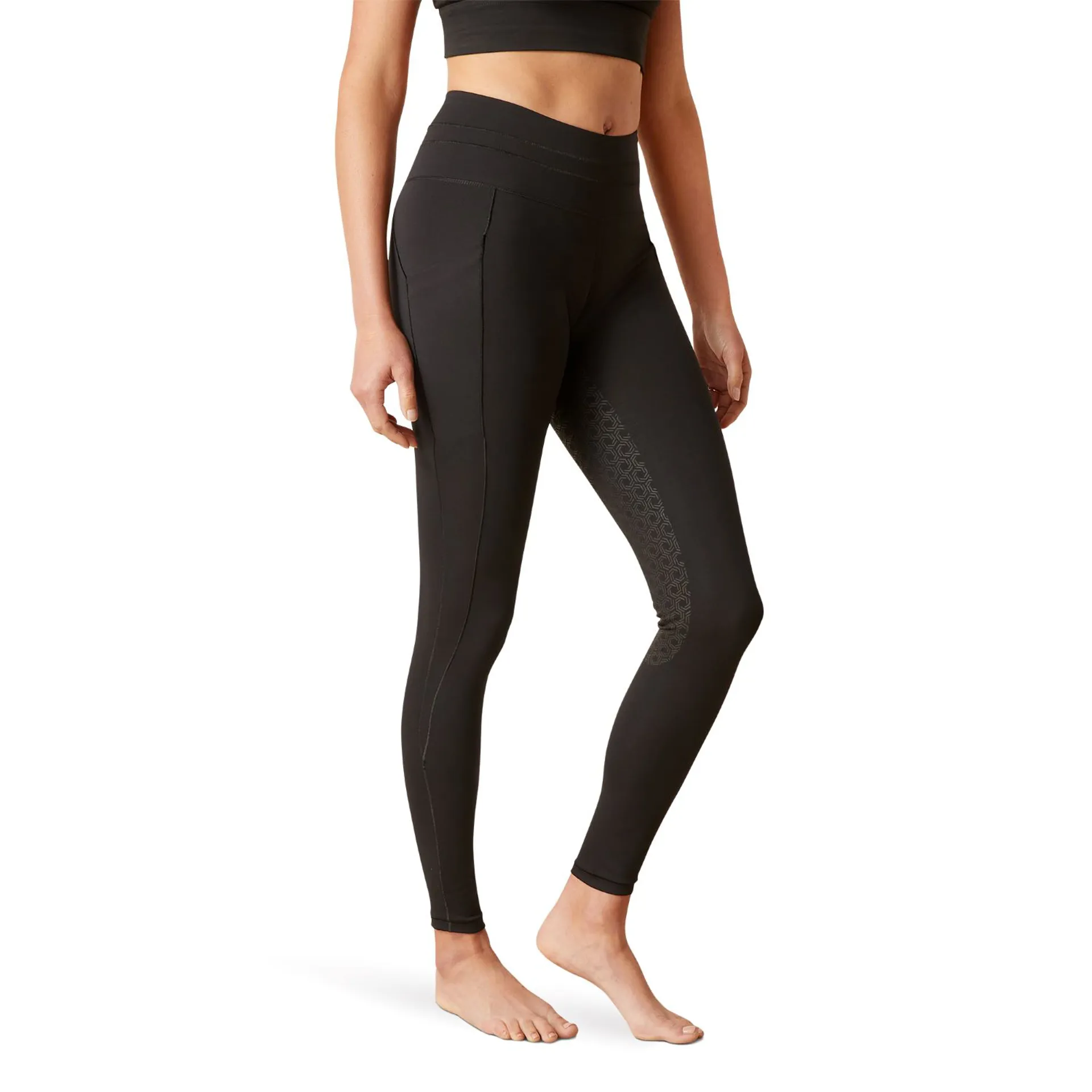 The Ariat EOS 2.0 FS Tights are sleek, performance-oriented riding tights designed for comfort and grip. Made with stretchy, form‑fitting fabric, they offer a full‑seat silicone grip for secure stability in the saddle and a flattering fit for everyday riding or training.