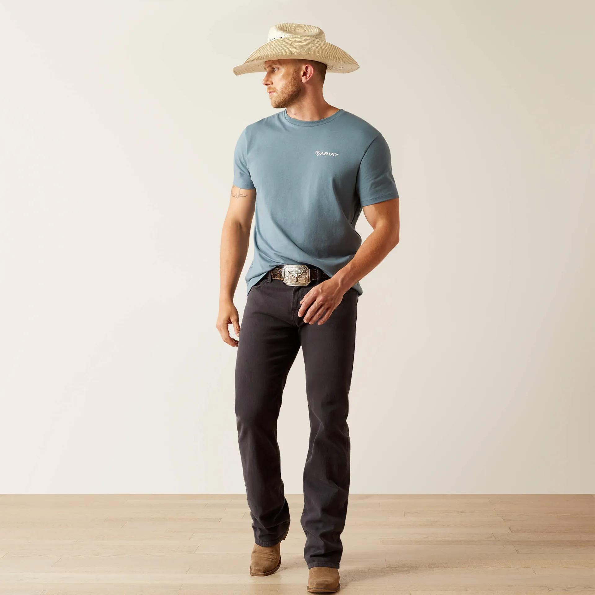 A classic, 100% cotton graphic tee with a Southwestern‑inspired logo and soft, relaxed fit. With a crew neck, short sleeves and eye‑catching screen‑printed back graphic, it’s perfect for casual everyday wear or pairing with jeans and boots for a laid‑back, outdoorsy vibe.