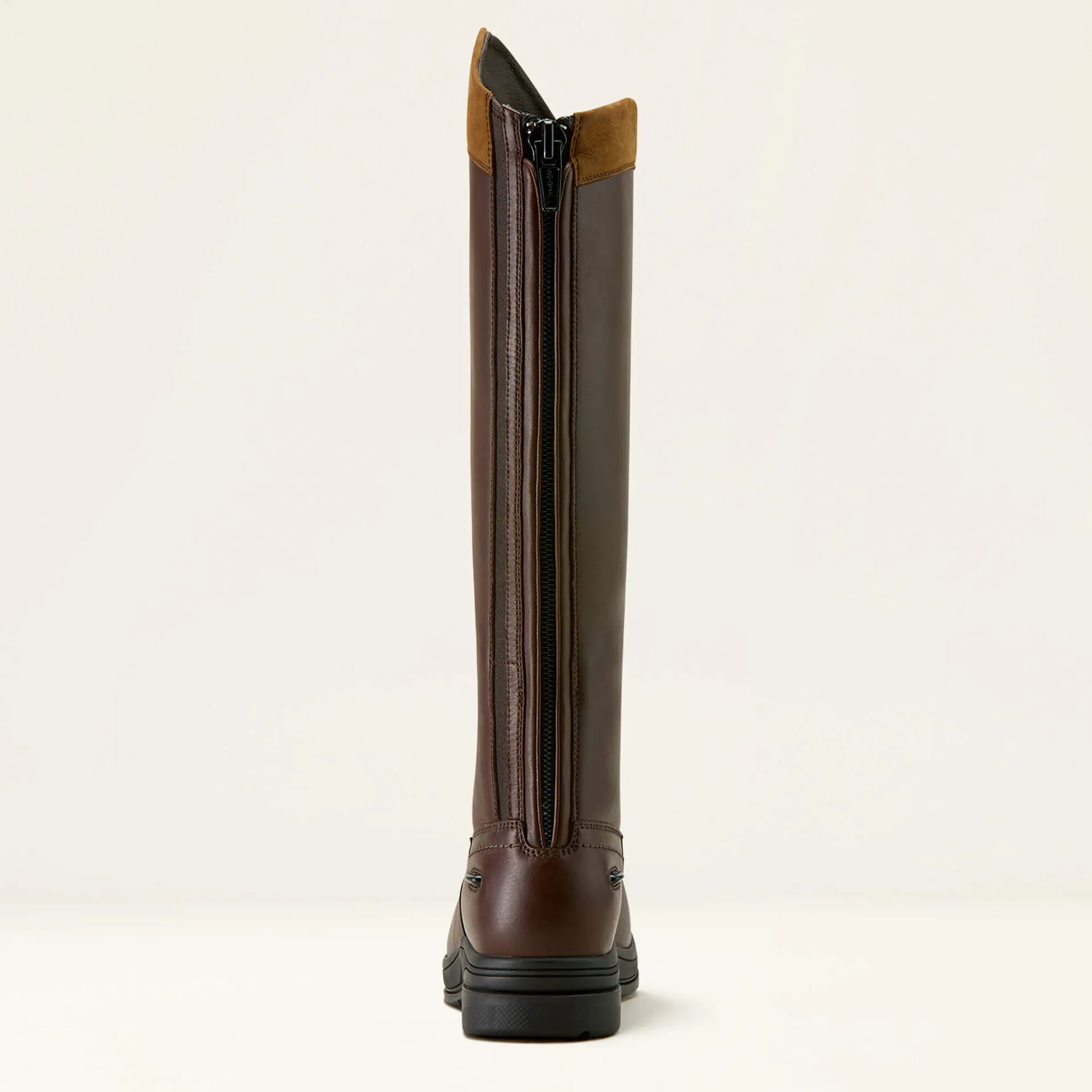 The Ariat Stamford Waterproof Boot in rich Chocolate is a premium tall boot designed to deliver elegance, comfort, and all-weather performance. Crafted from high-quality full-grain leather, this boot offers a sleek, timeless look enhanced by a flattering Spanish topline that creates a refined, leg-lengthening silhouette suitable for both riding and everyday wear.